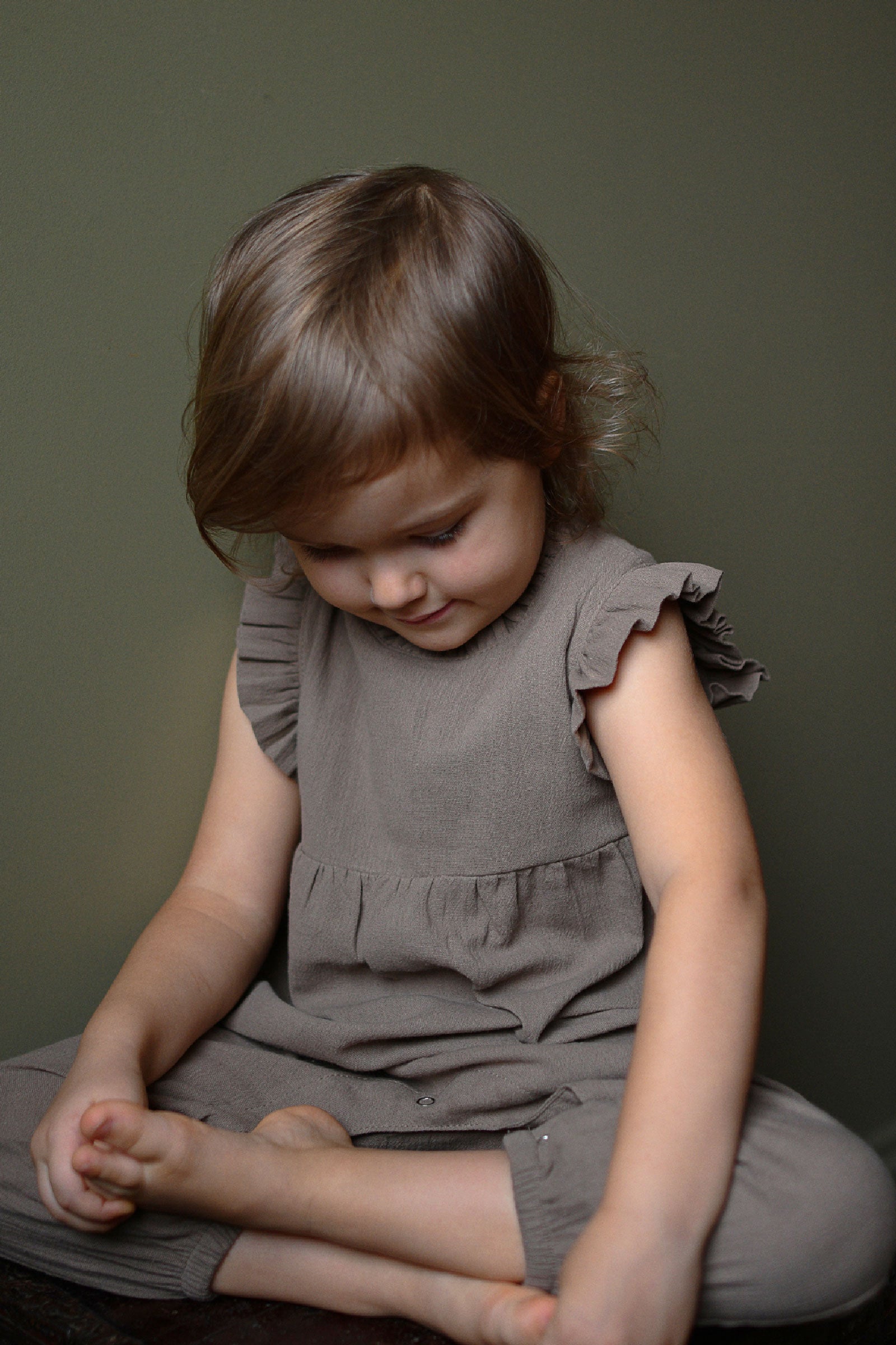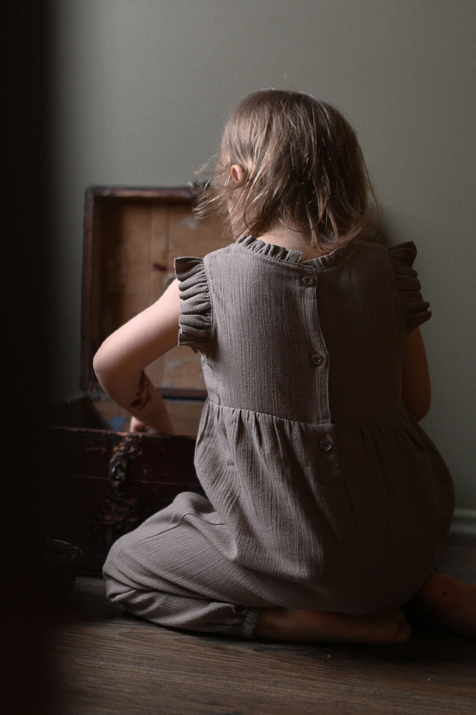 %100 pamuktan, omuzları fırfırlı, arkası düğme kapamalı, alt kısmı çıtçıtlı tulum.